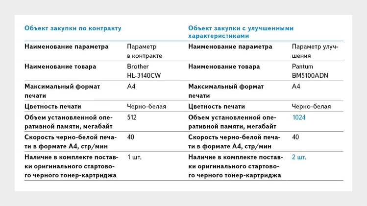 Кейс 1. Как выявить улучшенные характеристики на поставку МФУ