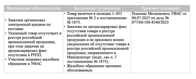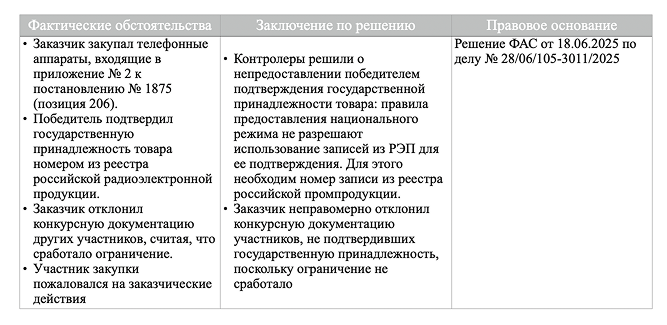 Реестровая запись из реестра российской радиоэлектронной продукции не подтверждает государственную принадлежность товара по постановлению № 1875.